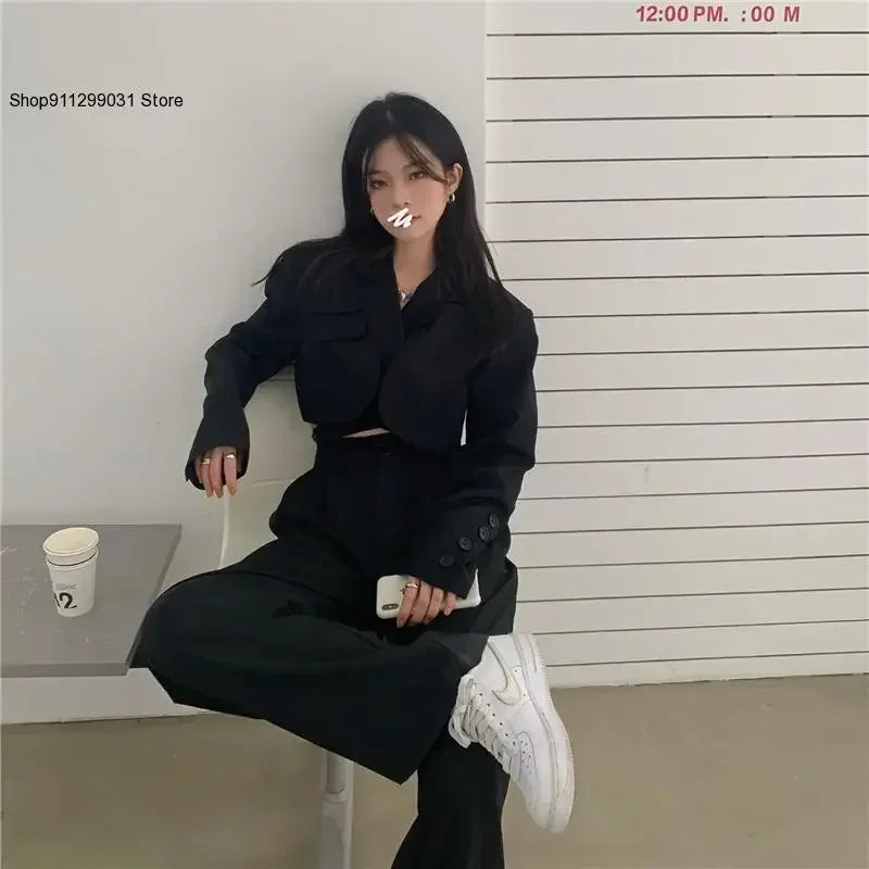 2025 DERSONA Women's New Chic Crop Blazer Jacket & High Waist Trousers Suits Wide Leg Pants Outfit 2-Piece Set Fashion For Female Summer